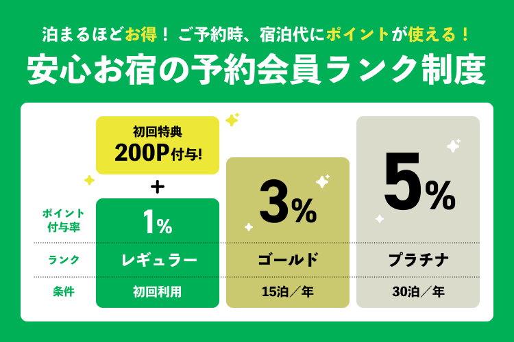 公式予約限定!宿泊するほどランクアップ・ポイントが貯まる会員プログラム
