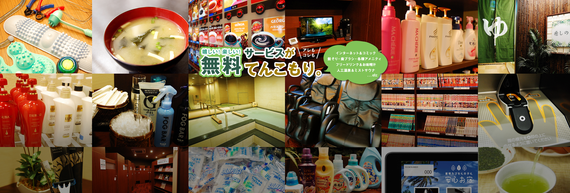 | バリアフリー設備 | 車椅子対応エレベーター・バリアフリートイレ・館内段差なし(カプセルベッドを除く) ※従業員の補助が必要な場合はご遠慮をいただいております。 |