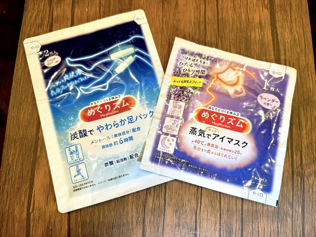 ▼ 「推し活応援!プラン」特典でもらった「休足時間」「ホットアイマスク」